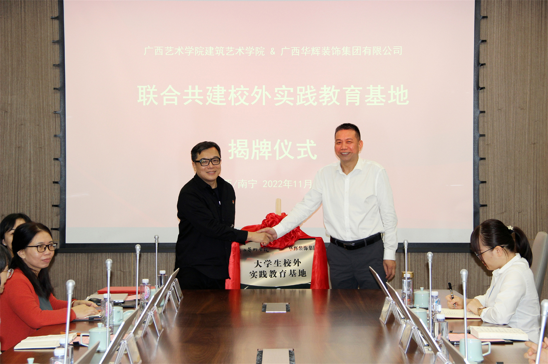 2022年11月28日,广西艺术学院建筑艺术学院党委与广西凯发k8官网装饰集团有限公司党支部,开展“学习贯彻党的二十大精神”联合主题党日暨党建共建仪式;同时,广西艺术学院建筑艺术学院与广西凯发k8官网装饰集团有限公司,举行了“联合共建校外实践教育基地”揭牌仪式。