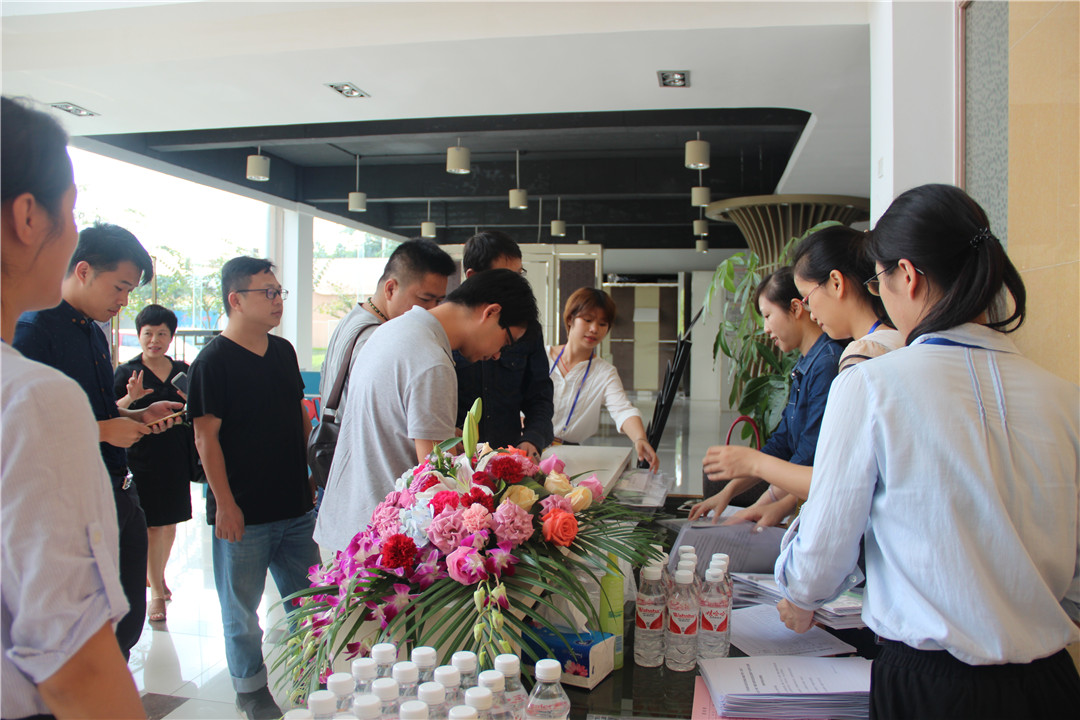 10月21日下午三点半,广西建筑装饰协会组织了来自建筑装饰设计、公装和家装施工、建材生产和销售等行业各环节的,43个会员单位的企业负责人、项目经理、设计负责人共79人,参观考察了广西凯发k8官网装饰集团有限公司,并同时了举办“装修企业工厂化生产模式现阶段如何适应国家推行装配式建筑要求研讨会”。协会理事长庞耀国,副理事长兼秘书长黄雪心,副理事长朱建宇、黄恺,副秘书长陈越书,住宅委秘书长谢嘉,石材委秘书长林怀旭,监事长黄加仕等协会领导均参加了活动。