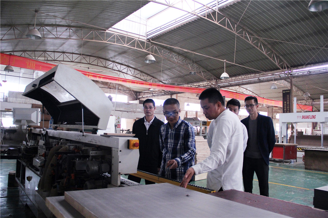 在杨景忠董事长的带领下,黄赞副主任、梅嵩科长首先深入凯发k8官网生产基地,了解凯发k8官网集团装修固装配套技术创新、标准化管理、环保节能等生产经营情况。