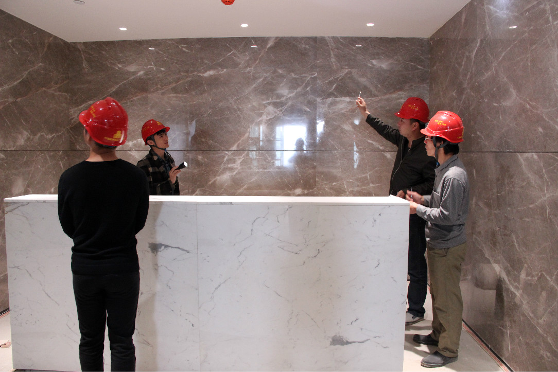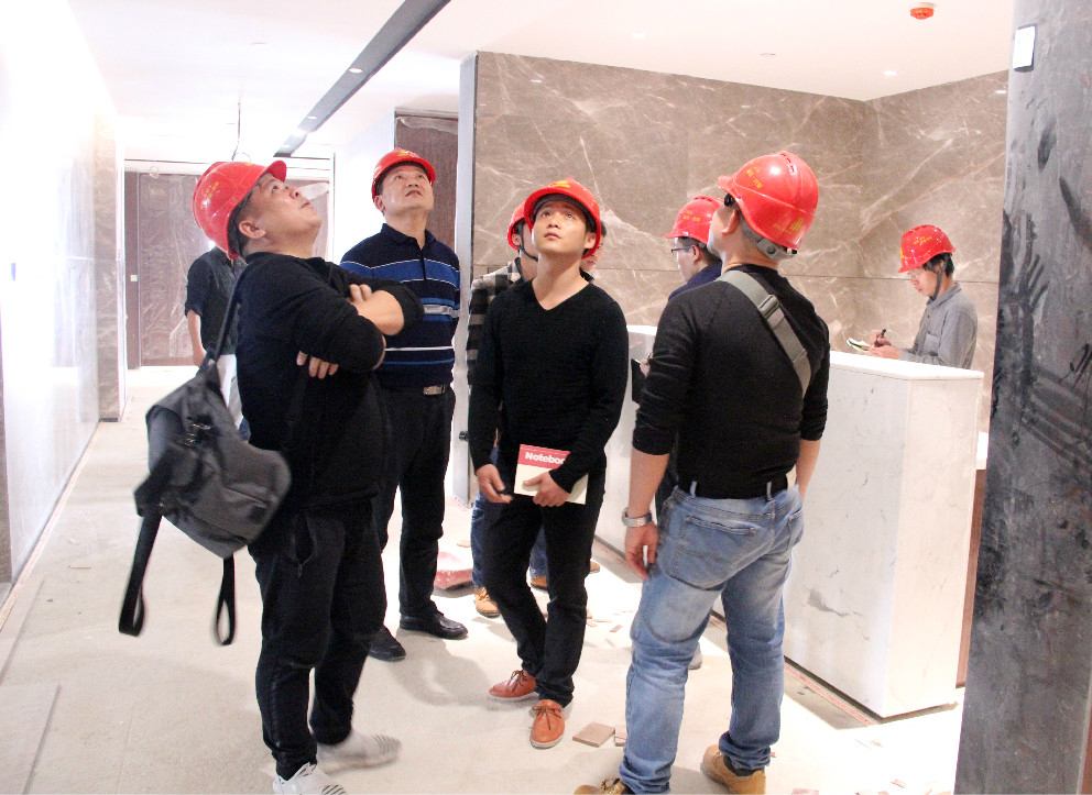由凯发k8官网装饰集团承接的广西洋浦南华糖业集团办公楼层室内装修工程已经接近尾声,为不断完善和改进质量管理工作,提高质量管理水平,打造精品工程,2018年3月26日,集团组织工程中心质安部、工程管理部等多个部门联合成立自检自查小组,对该项目的质量、工艺进行全方位检查。