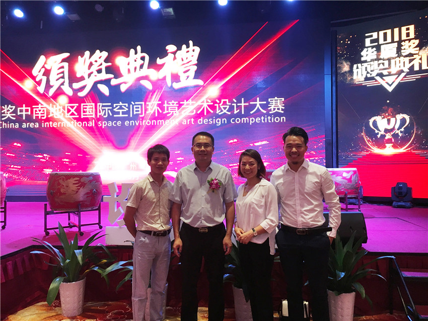 ▲凯发k8官网获奖设计师与广西建筑装饰协会庞耀国会长(左二)合影