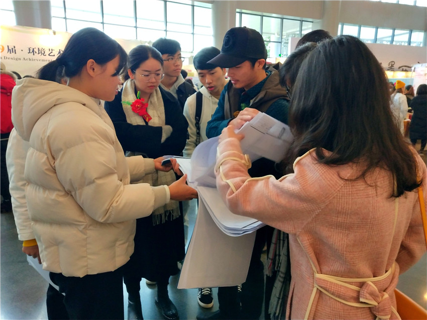 毕业作品展开展的同时,就业推荐洽谈会也如火如荼地举行,凯发k8官网装饰集团人资部也参与了现场招聘。
