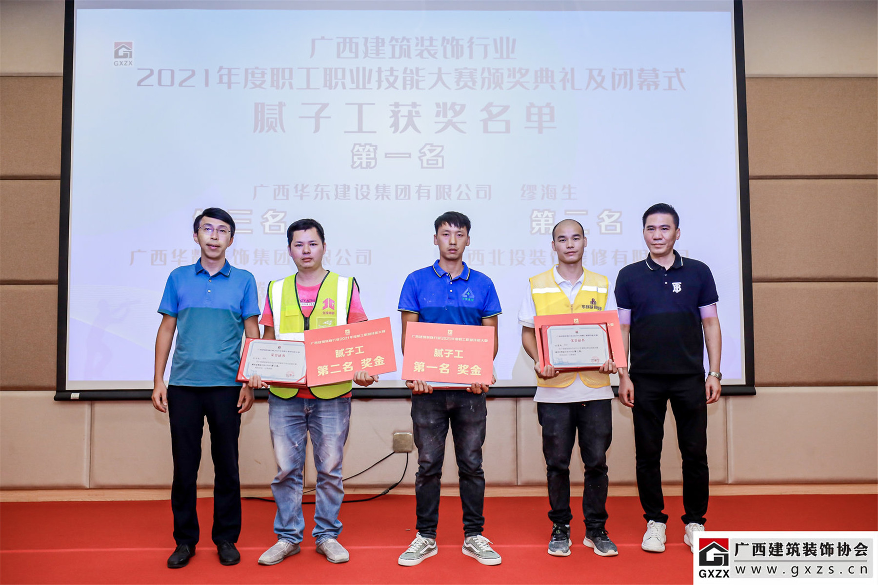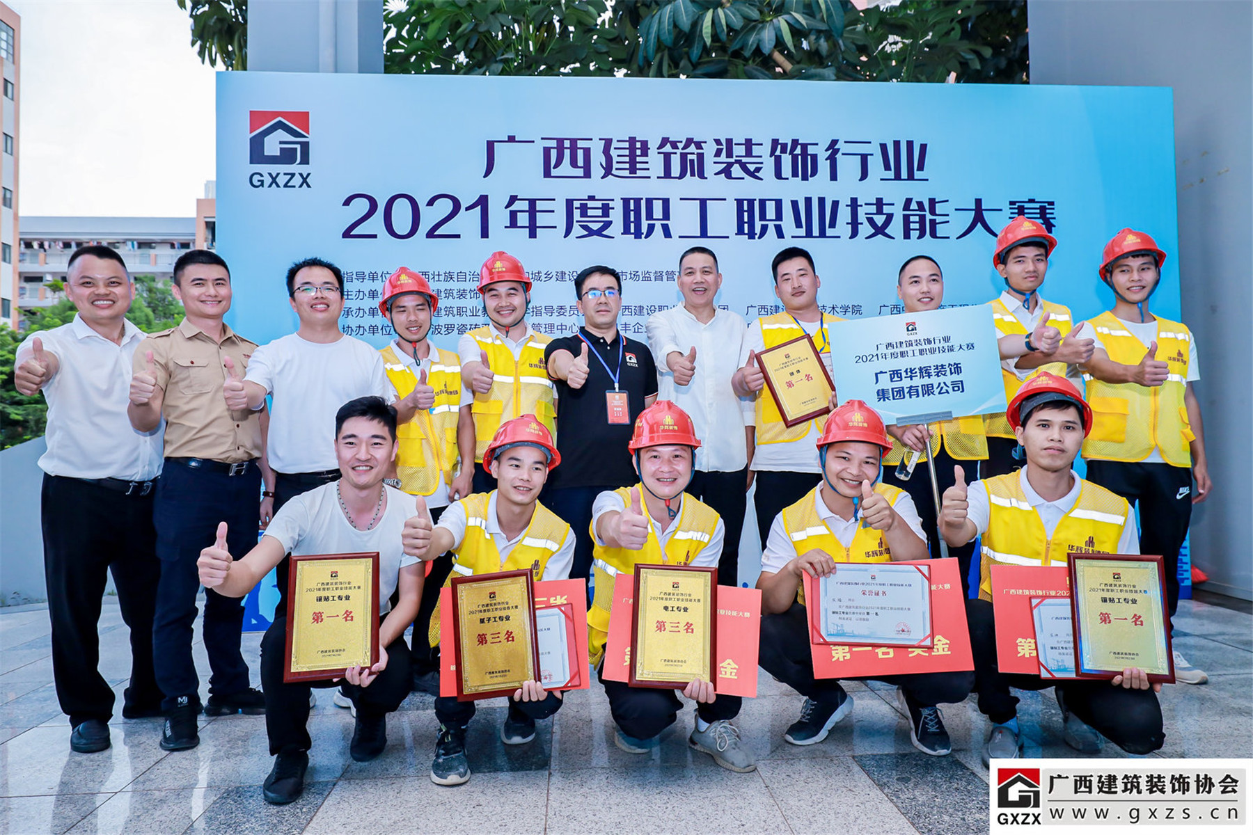 2021年7月23日,广西建筑装饰行业2021年度职工职业技能大赛在广西建设职业技术学院举行。凯发k8官网参赛选手荣获团体第一名且综合评分满分100分、镶贴工第一名、电工第三名、腻子工第三名的好成绩。