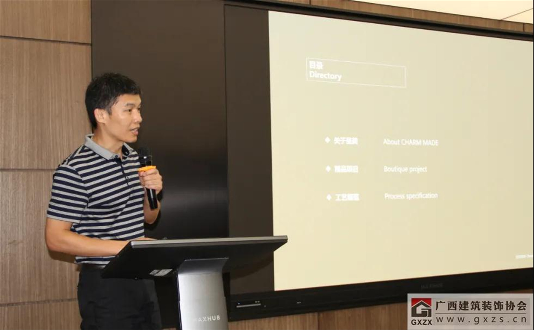协会副会长、广西华蓝建筑装饰工程有限公司董事长朱建宇进行了“以设计引领建筑装饰企业创新发展”的分享。