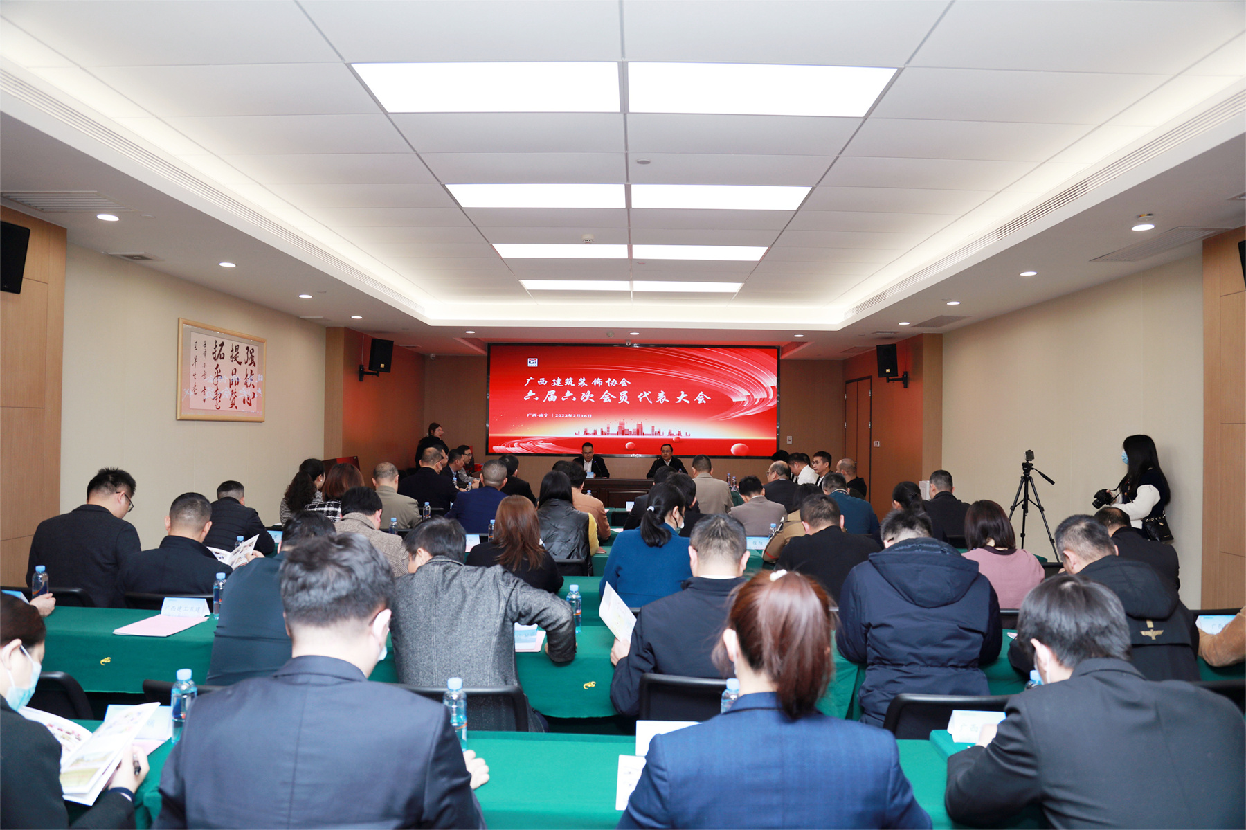 2023年2月16日,广西建筑装饰协会六届六次会员代表大会在南宁成功召开。会议设主会场与分会场,主会场参会人员主要有六届理事会班子成员、获得2022年度广西建筑装饰工程优质奖企业代表、第一届广西建筑装饰协会优秀青年建筑装饰设计师等约70人;部分会员单位在分会场全程收看会议视频直播。会议邀请广西住房和城乡建设厅建筑市场监管处黎旭标处长出席并致辞。会议由庞耀国会长主持。