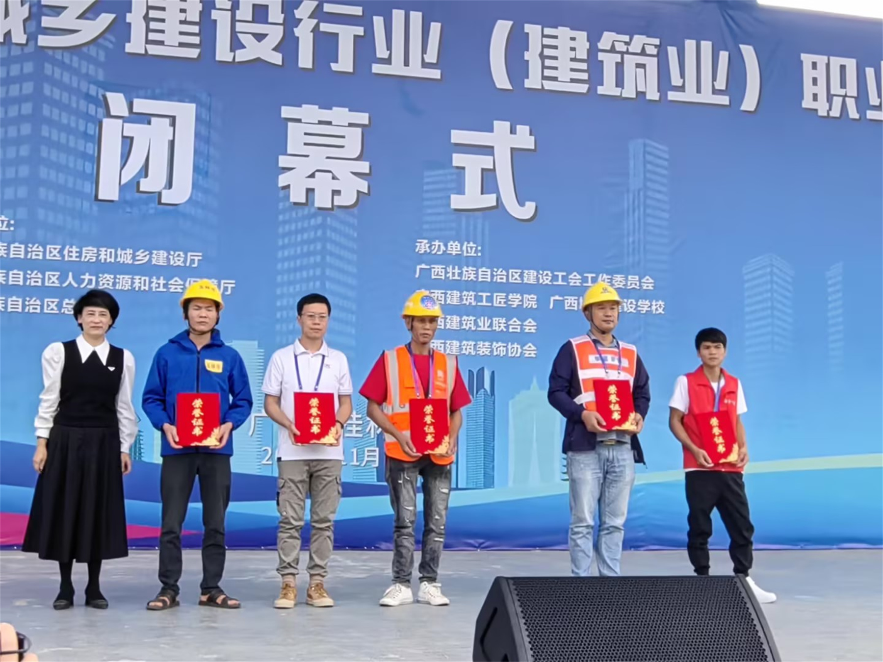2023年11月3日,由广西壮族自治区住房和城乡建设厅,广西壮族自治区人力资源和社会保障厅,广西壮族自治区总工会主办的,2023年全区住房城乡建设行业(建筑业)职业技能竞赛圆满举办。凯发k8官网装饰集团荣获精细木工冠军、镶贴工亚军的好成绩。