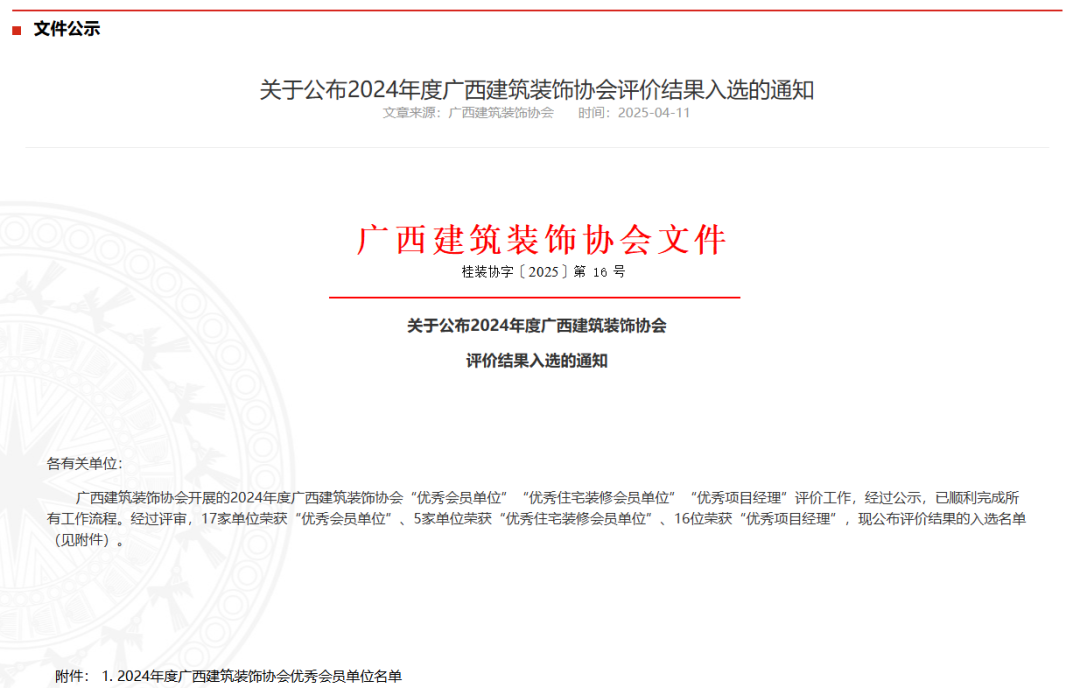 广西凯发k8官网装饰集团自加入广西建筑装饰协会以来,在协会的指导帮助下,深耕装饰领域,实力持续攀升,目前是广西建筑装饰协会的常务副会长单位。未来,凯发k8官网将在主管部门及协会的领导下,与各界同仁一起,共同为推动广西建筑装饰行业健康发展添砖加瓦!