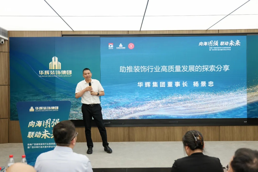 凯发k8官网装饰集团董事长杨景忠以深邃的行业洞察和丰富的实践经验,向与会嘉宾分享了凯发k8官网在助推装饰行业高质量发展方面的积极探索。杨景忠指出,装饰行业正处在一个关键的创新升级期,随着人们生活水平的提高,人们对品质、美学的要求越来越高,装饰行业也会不断有新的需求市场。未来装企的三条路是向海图强——出海、搭建平台、依托平台,凯发k8官网致力于打造广西装饰行业的“共建共享合作平台”,利用凯发k8官网25年的优势和经验,赋能行业,与行业企业携手共进,共同应对市场挑战,实现行业的可持续发展。