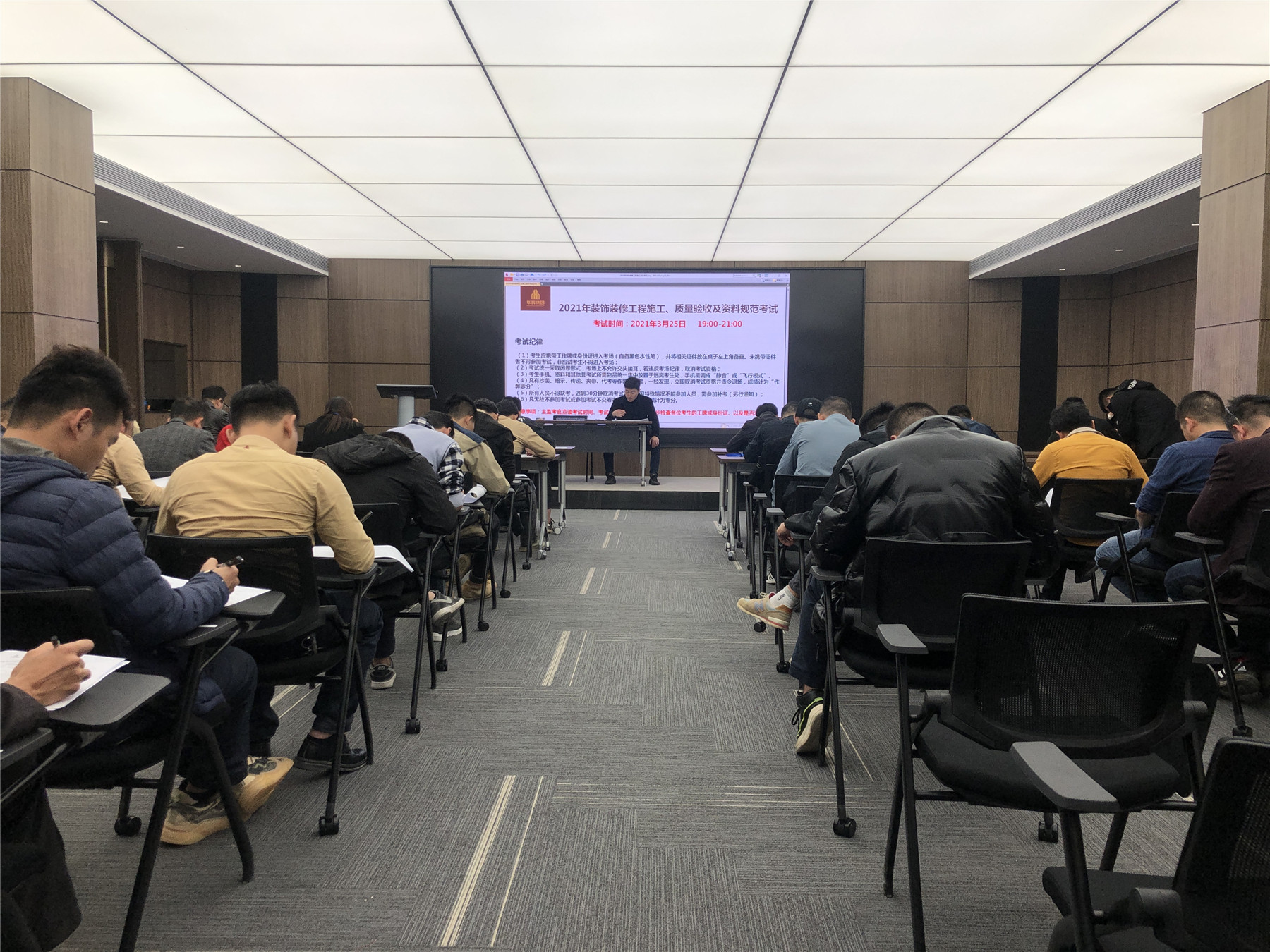 2021年3月25日,凯发k8官网集团开展第二批装饰装修施工、质量验收及资料规范考试,进一步推动集团装饰工程标准化建设,确保项目管理人员深入了解和掌握工程管理标准化要求。